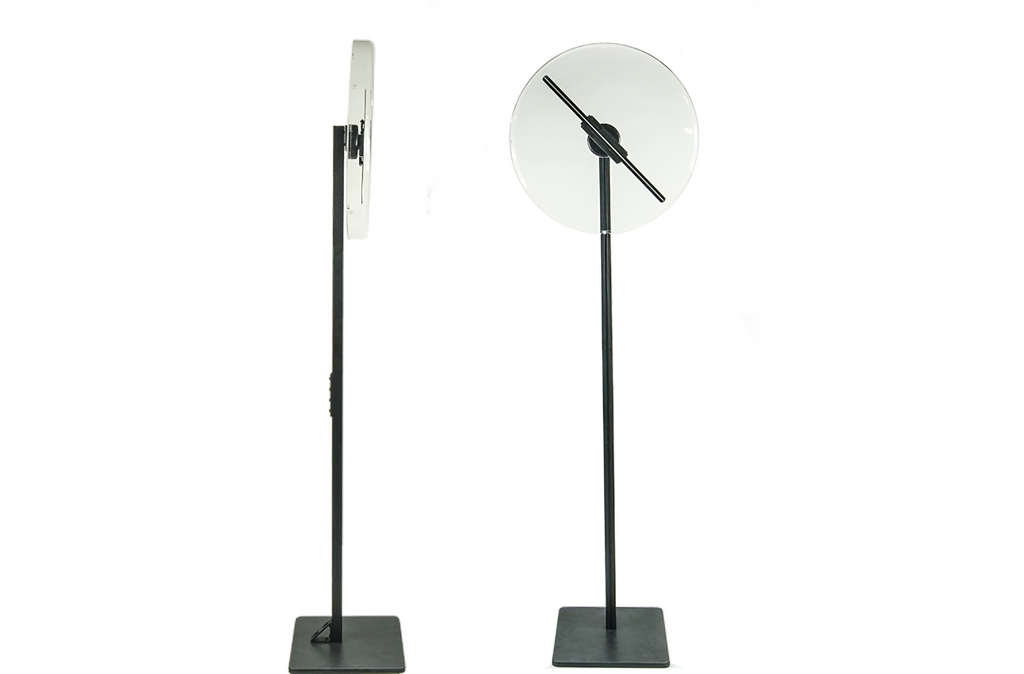 Créez un effet spectaculaire avec nos hélices hologrammes sur pied, disponibles en 50 cm ou 160 cm de diamètre. Parfaites pour salons, vitrines et animations en magasin, elles projettent des visuels 3D flottants et captivants. Montées sur pied pour une installation stable et élégante, elles garantissent un impact visuel fort et innovant lors de vos événements.